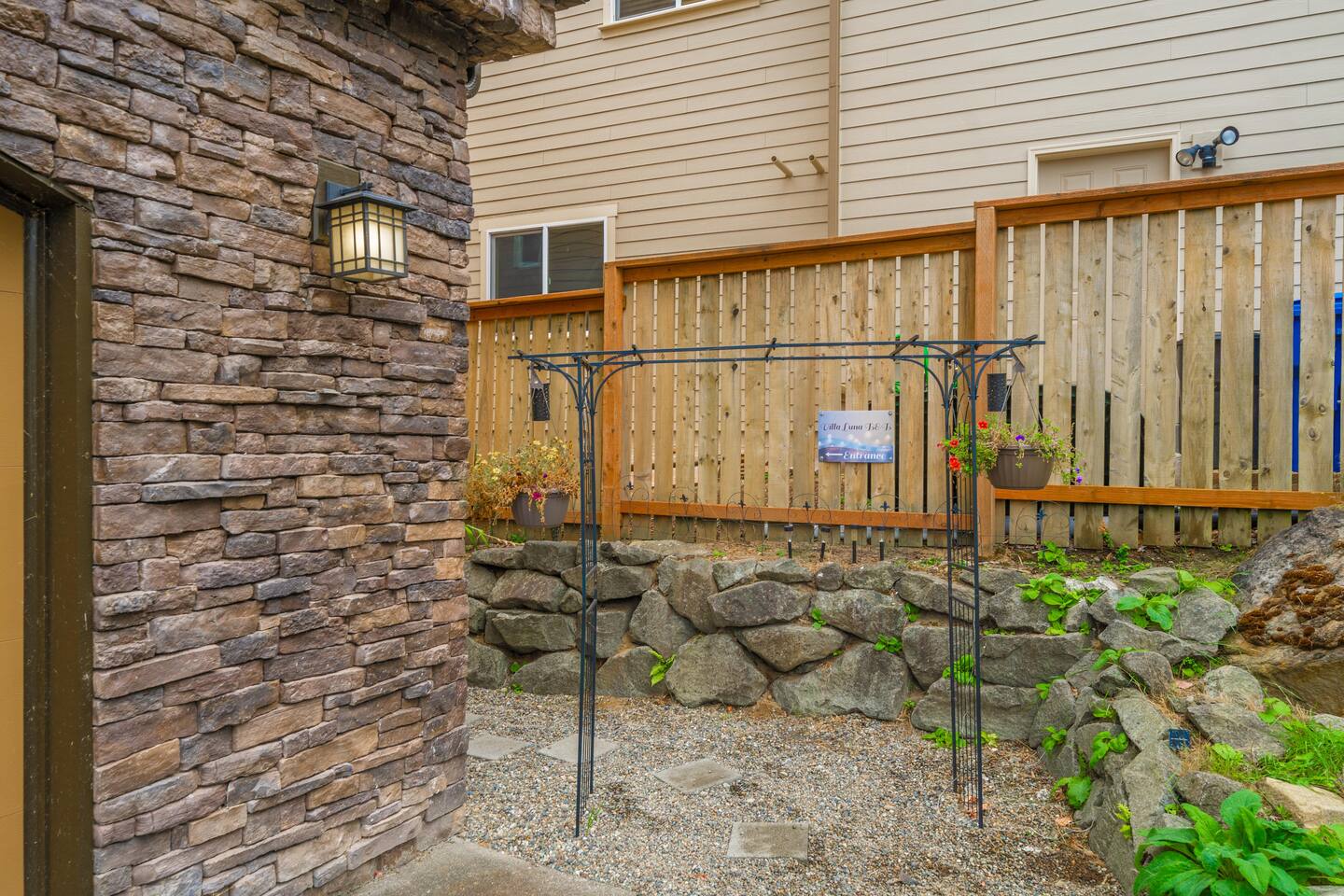 Guest's have plenty of parking in the lot across the street. Access to the Villa is a private entrance on the right side of the garage, just through the backyard gate. Guests are welcome to enjoy all levels of the entertainment decks, and outdoor firepit area in addition to their private seating areas and outdoor spa tub.